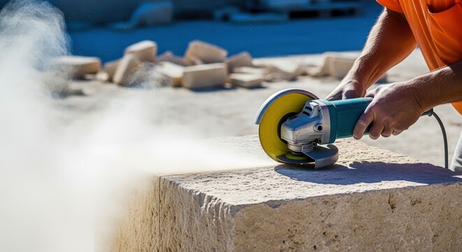 Craftsman Shaping Stone with Angle Grinder: Precision Cutting for Construction and Design Applications