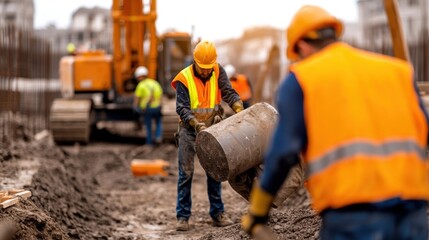 Blurred Background of High contrast shot of construction site at sunset with silhouettes of workers and structural beams creating an artistic and dramatic scene