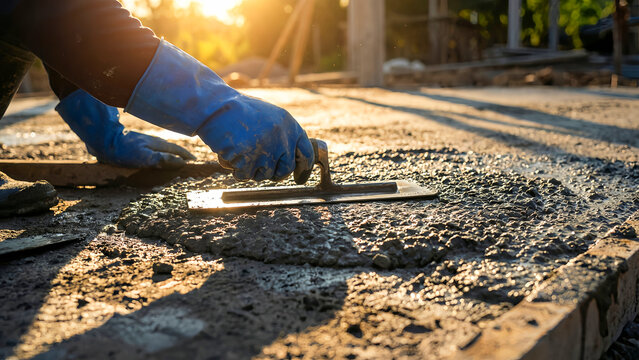 Mason Laying Bricks with Cement Mortar Close-Up