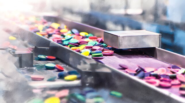 Colorful Plastic Recycling Flowing Efficiently on an Industrial Assembly Line Illustration