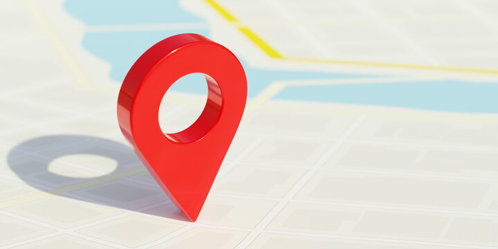 Orange map pointer marking specific geographical location, pinpointing exact spot against transparent backdrop