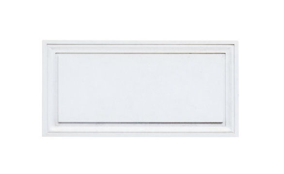 A square empty classic ornamental frame signboard plaque made of white marble stone attached to a white wall isolated on a white background, signboard, ornamental, stone wall, plaque