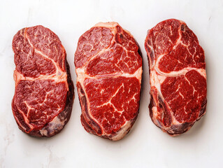 Close-up of fresh raw red beef meat steak structure. Food background. Generative AI