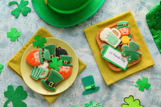 March 17 is St. Patrick's Day. Composition of sweet gingerbread on a light background.