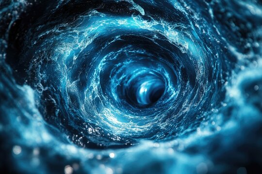 This image captures the captivating beauty of a swirling vortex in shades of blue, creating a hypnotic water spiral that draws the eye inward.