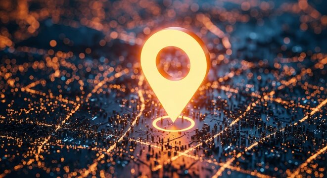 3d map pin marker in vortex with futuristic digital backdrop
