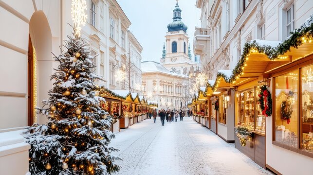 Festive winter streets of Europe featuring Christmas markets in Prague, Nuremberg, Stuttgart, Strasbourg, and Warsaw