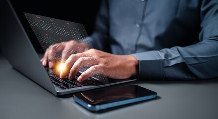 calendar, date, event, note, agenda, appointment, meeting, plan, memo, scheduled. typing keyboard to check mine agenda and meeting. at top that table HUD is showing, schedule and appointment mark it.