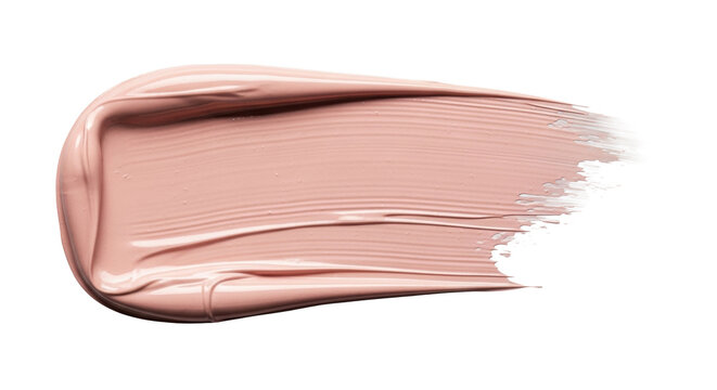 Light pink makeup stroke, creamy, dewy, distinct brush marks, on a transparent background, raking light. Concept of precise beauty