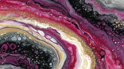Abstract Fluid Art Texture with Swirling Maroon Gold White and Black Colors Decorative Glittering Accent Design for Modern Artistic Visualizations
