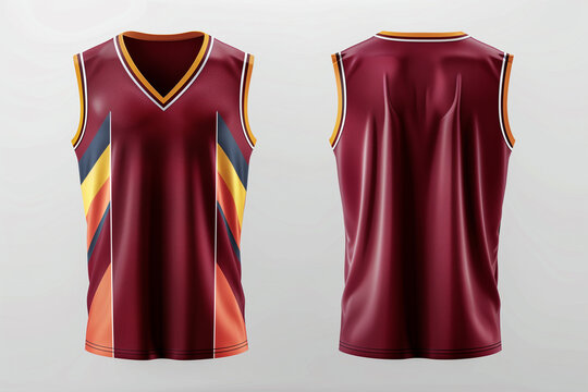 A white sleeveless jersey with maroon trim, and a small back view
