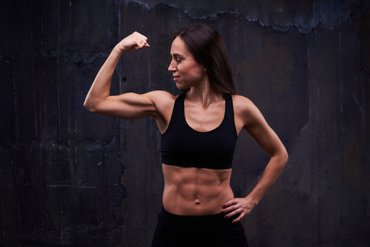 Bodybuilding competitions on the scene. Man sportsmen physique and athlete. Black background with lights.
