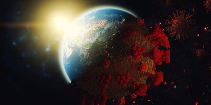 The planet earth is wearing a protective mask in the space. Concept of quarantine, protection from viruses and pandemic. Elements of this image furnished by NASA