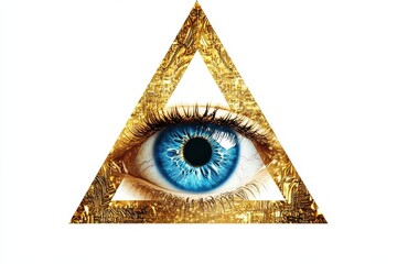 Eye Triangle. Masonic Symbol with Blue Eye in Golden Triangle