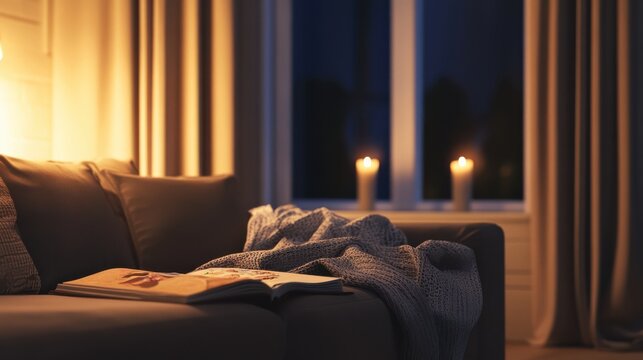 Cozy winter morning woman cradling steaming ceramic mug with knit sweater close-up