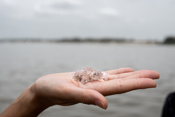 Pile of plastic shipping pallet. Industrial plastic pallet stacked at factory warehouse. Cargo and shipping concept. Plastic pallet rack for export delivery industry. Plastic pallet storage warehouse.
