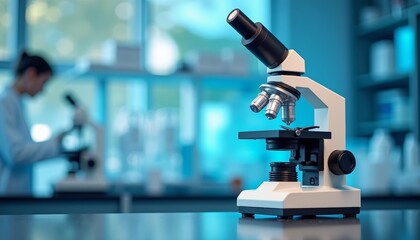 Scientist Conducting Experiment with Blue Liquid in Laboratory Setting