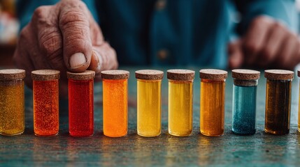 Students holding colorful flasks conducting hands-on science experiments with math overlay