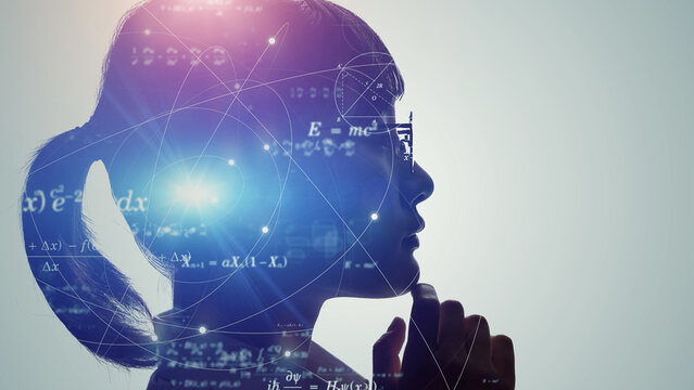 Happy biracial schoolgirl learning math enthusiastically in classroom