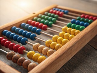 A boy focuses on using an abacus to practice math skills during afternoon light.