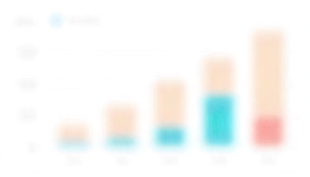 Blurred bar graph showing upward trend with blue and orange bars on a white background chart data