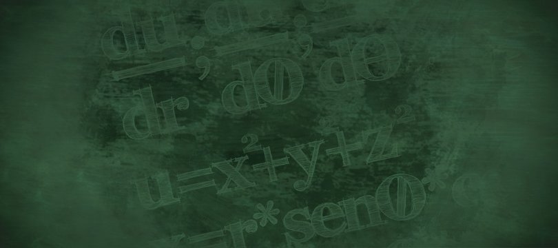 Abstract mathematical formulas on blackboard background
