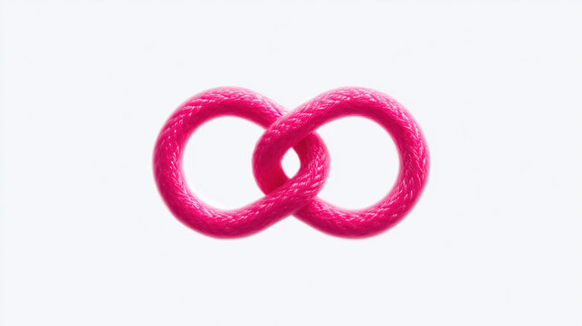 Pink cord forms infinity symbol against white background in a studio setting, symbolizing concepts like endlessness, connection, and possibility Gnfinity, symbol, pink, cord, white, background, endles