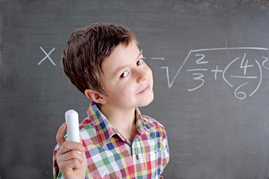 Child coding with AI integrated security, A young child intensely writes on a glowing surface filled with mathematical equations, curiosity and creativity