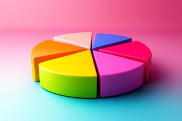 Colorful pie chart model on a vibrant background showcasing different segments and hues