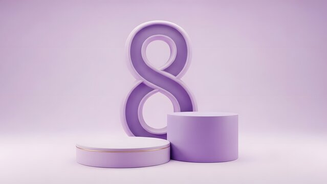 Purple infinity symbol with cylindrical objects on white background