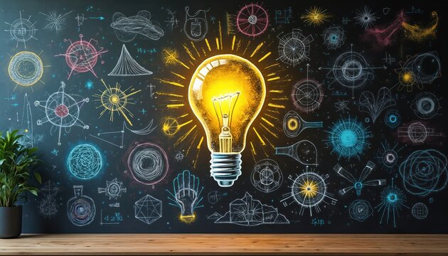 Conceptual light bulb with mathematical formulas for innovation