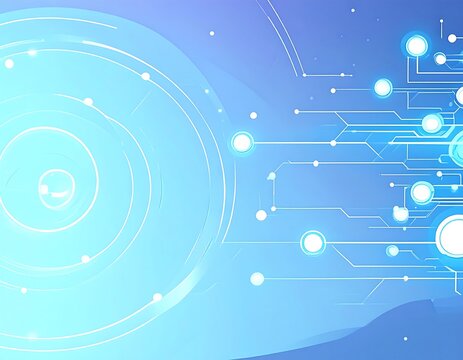 Abstract blue design featuring concentric circles and interconnecting lines with glowing nodes