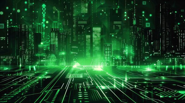 Futuristic green qr code with digital matrix background