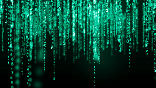 Matrix code, digital rain background, The falling green characters in vertical lines on computer screen