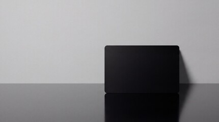 Blank black credit card with emv chip on grey surface