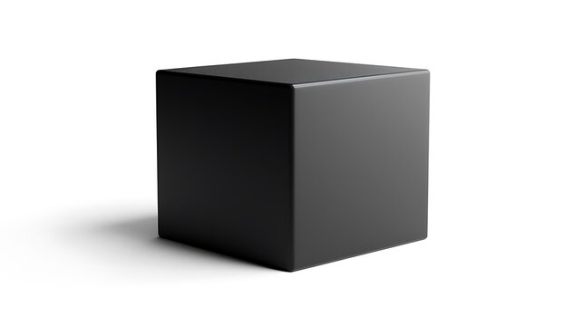Solid black cube shown from a three-quarter perspective with clean edges and a matte finish
