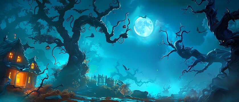 Mystical Full Moon Night in the Creepy Woods