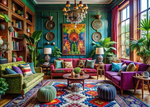 Bohemian Bliss: Colorful and Eclectic Living Room with Global Inspirations