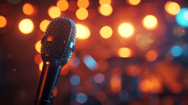 Close-up of classic microphone at concert