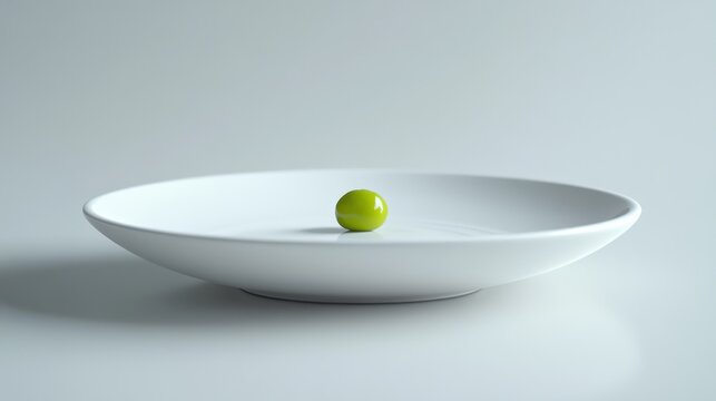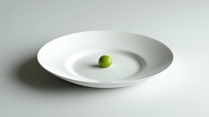 Empty plate with a single pea placed in the center, symbolizing food restriction