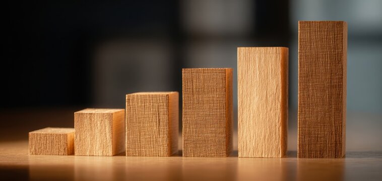 Abstract composition of metrics and indicators charting an upward trajectory, allowing space for text, background image. Generative AI