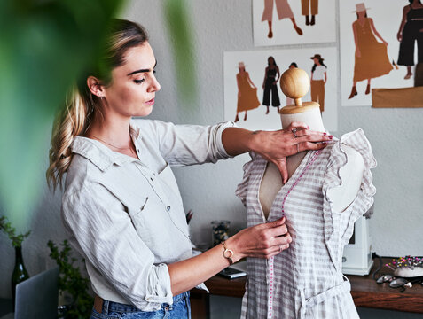 Dog Clothes. Female Tailor Wearing Suit On Pet