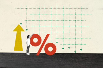 Speedometer with arrow indicating the percentage of return. Decreasing interest rates.