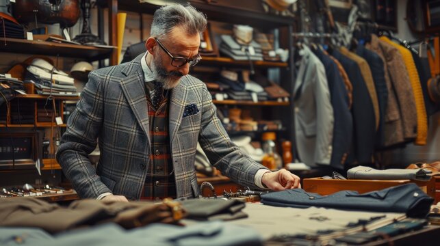 A tailor measuring a customer for a custom-made suit, showcasing personalized clothing services