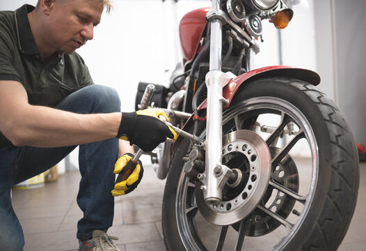Mechanic Focused In Motorcycle Workshop Preparing Tool Images