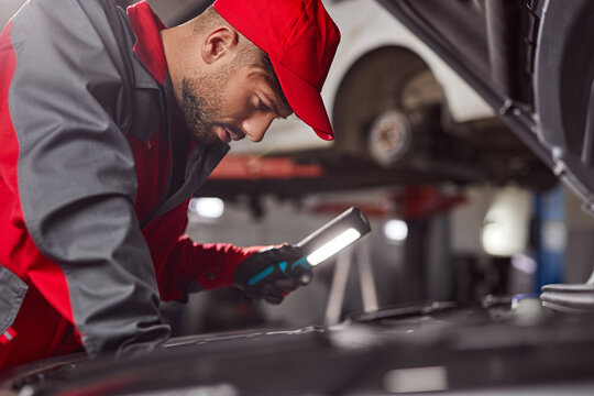 Auto mechanic working in garage. Repair service