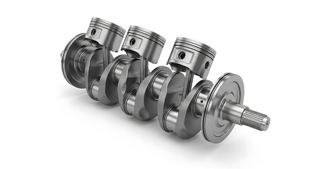 Engine Crankshaft with Pistons Automotive Mechanical Engineering Component on White Background