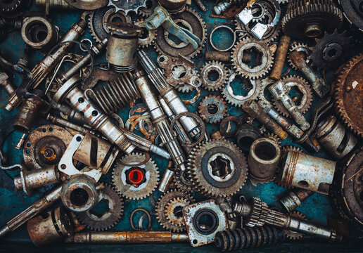 Concentrated mechanic inspecting motorcycle part in workshop setting