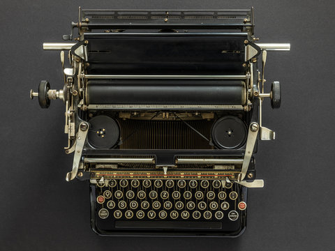 Close up of an old dirty and rusty typewriter on a white background with the concept that the past is gone