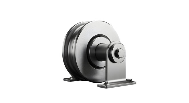 Industrial pulley wheel isolated on transparent background for mechanical engineering